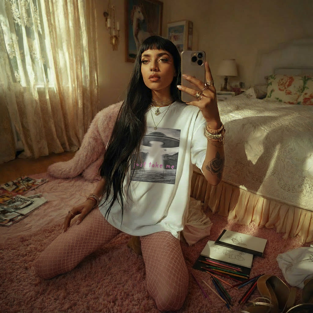 For those days when you've had enough, the "Just Take Me" Alien Spaceship Tee says it all.